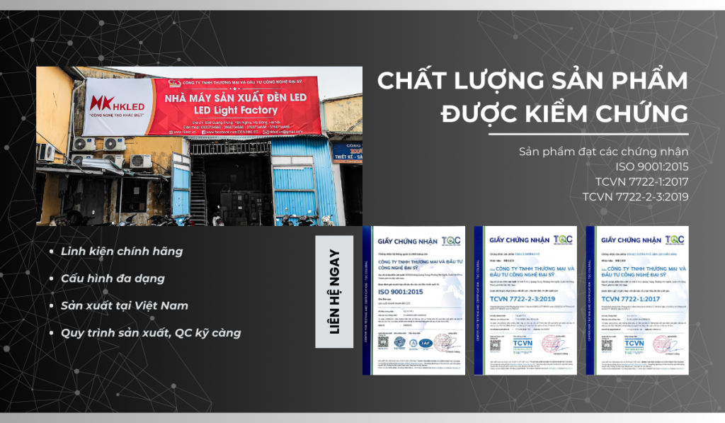 - Tiêu chuẩn: ISO 9001:2015, TCVN 7722-1:2017