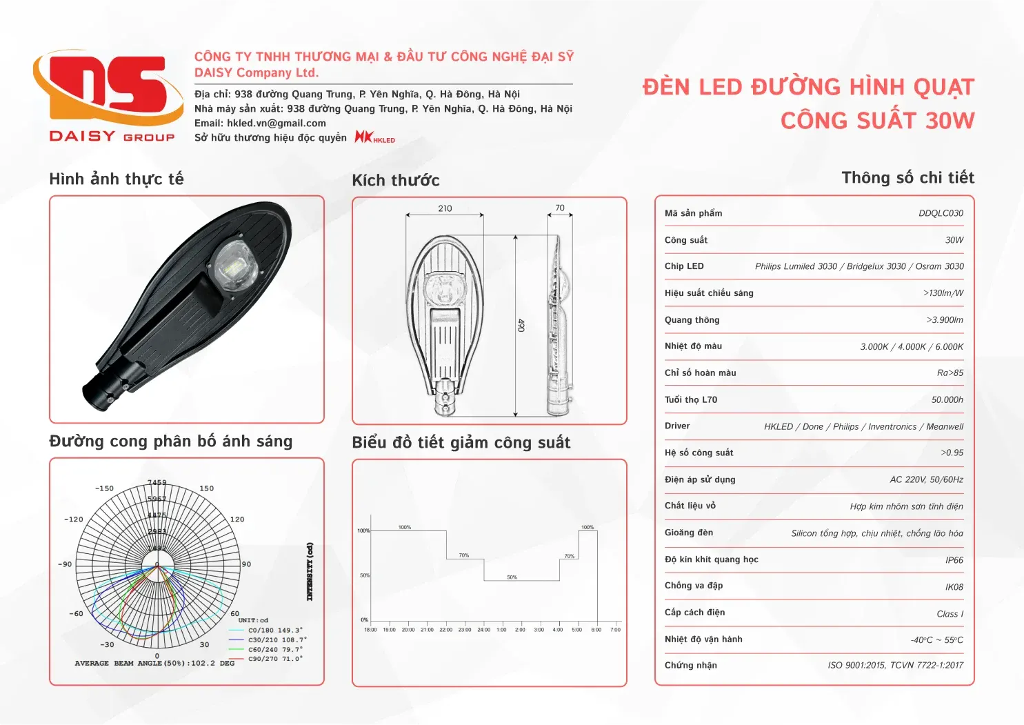Đèn LED đường phố DQL chip LED COB – Công suất 30W