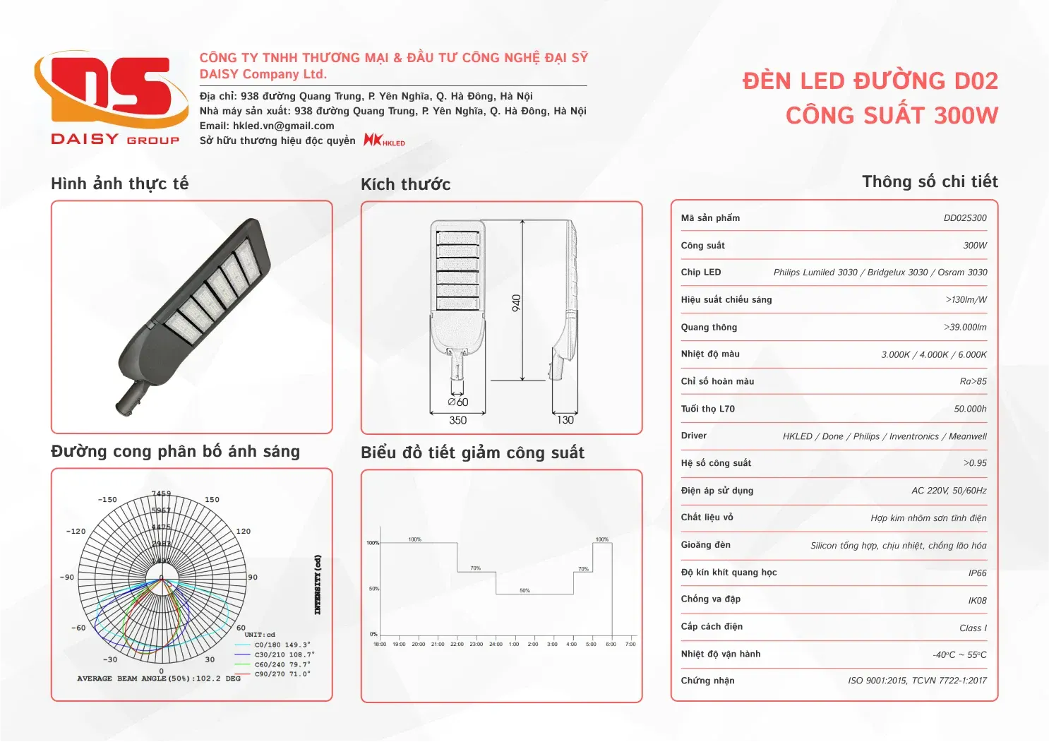 • Hiệu suất chiếu sáng: 130lm/W