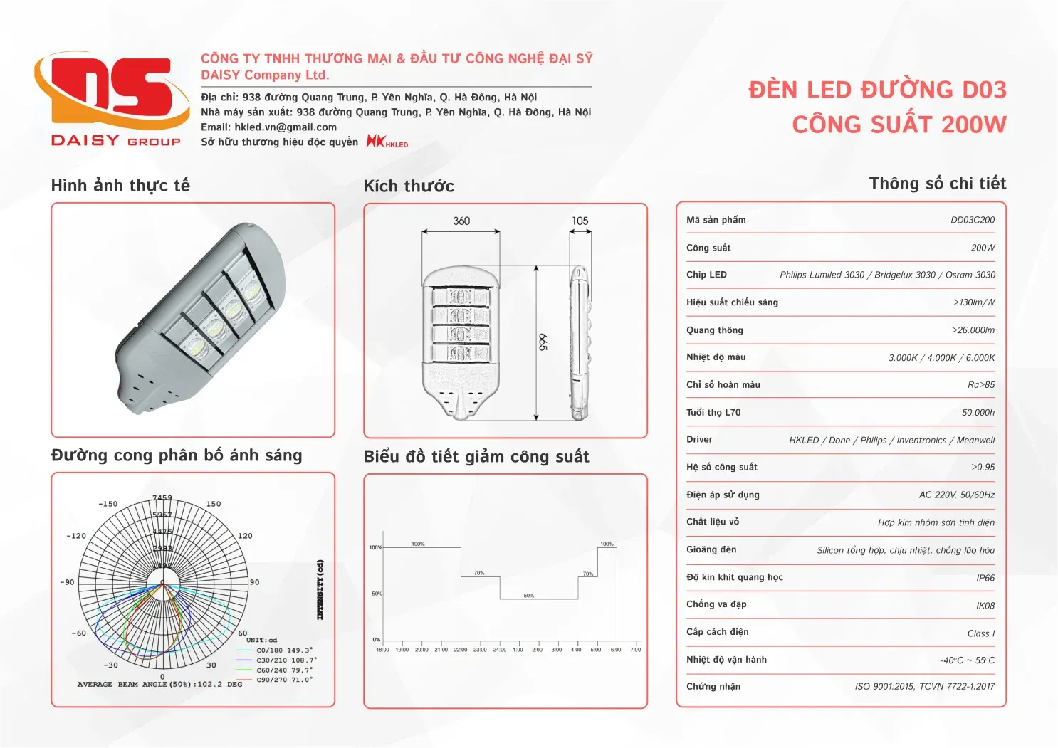 • Tuổi thọ L70: 50.000h