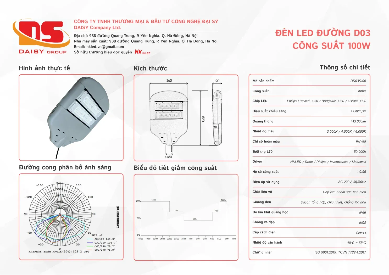 • Hiệu suất chiếu sáng: 130lm/W
