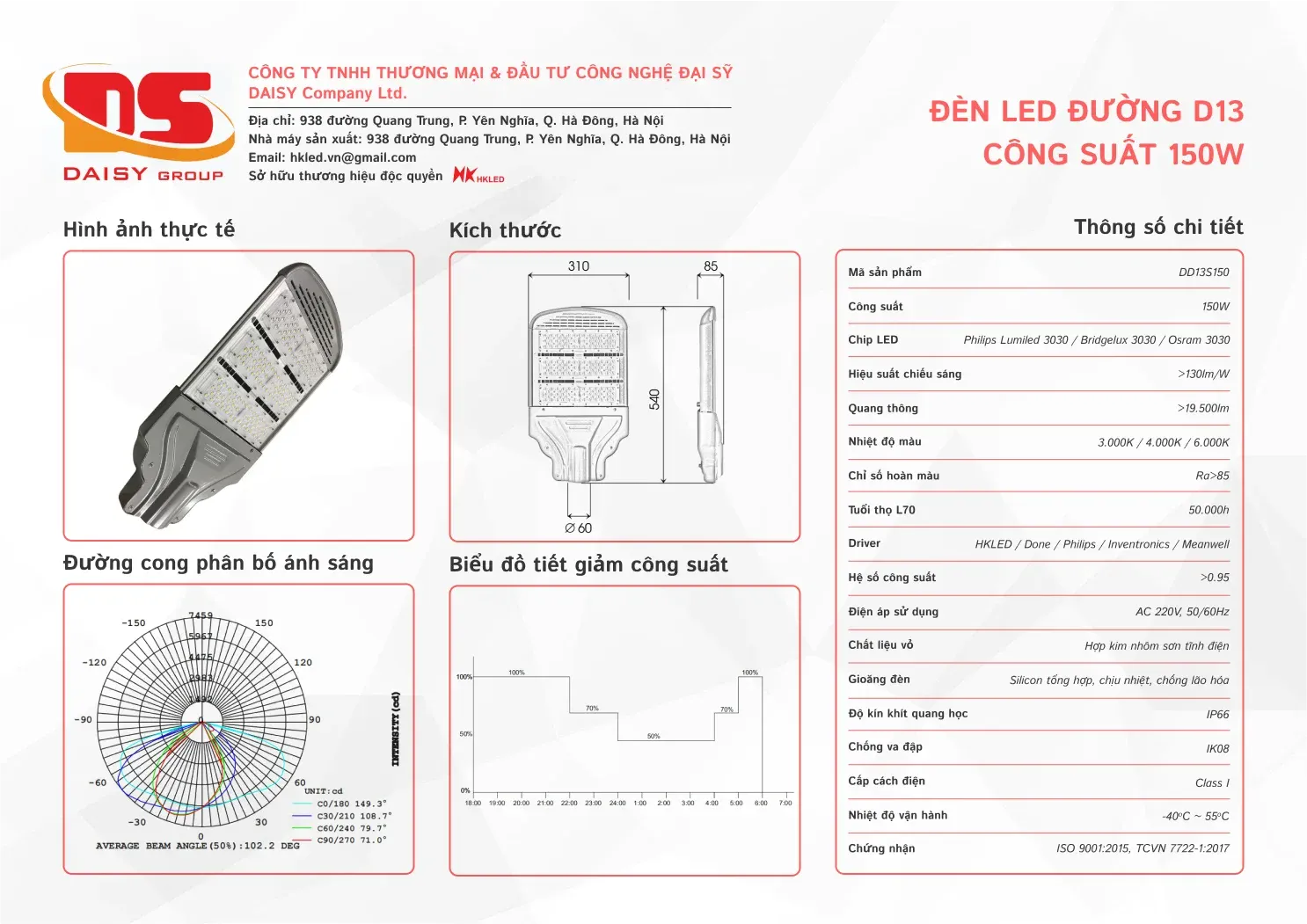 Đèn LED đường phố D13 chip LED SMD – Công suất 150W