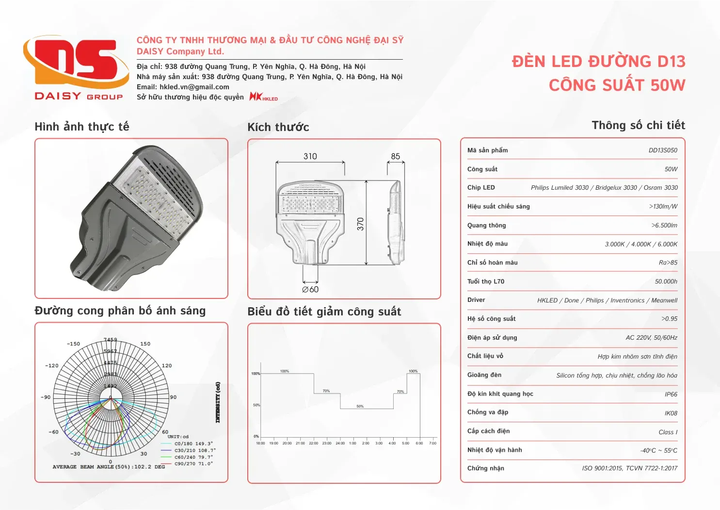 Đèn LED đường phố D13 chip LED SMD – Công suất 50W