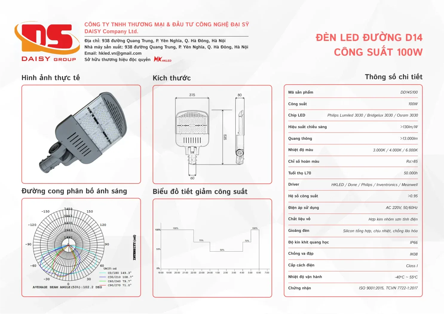Đèn LED đường phố D14 chip LED SMD – Công suất 100W