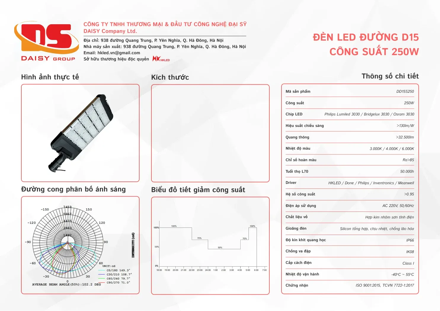 Đèn LED đường phố D15 chip LED SMD – Công suất 250W