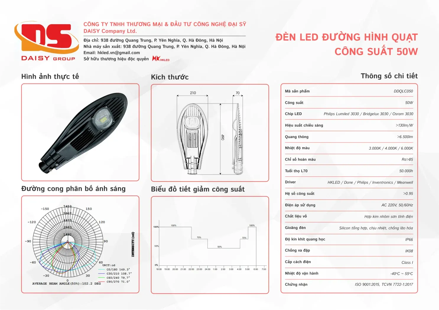 • Tuổi thọ L70: 50.000h