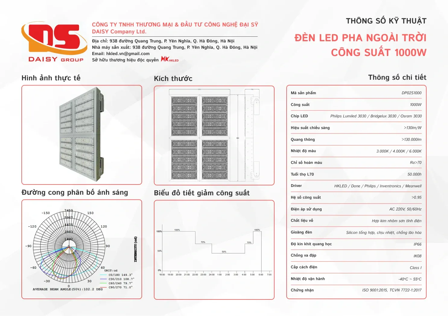 • Tuổi thọ L70: 50.000h