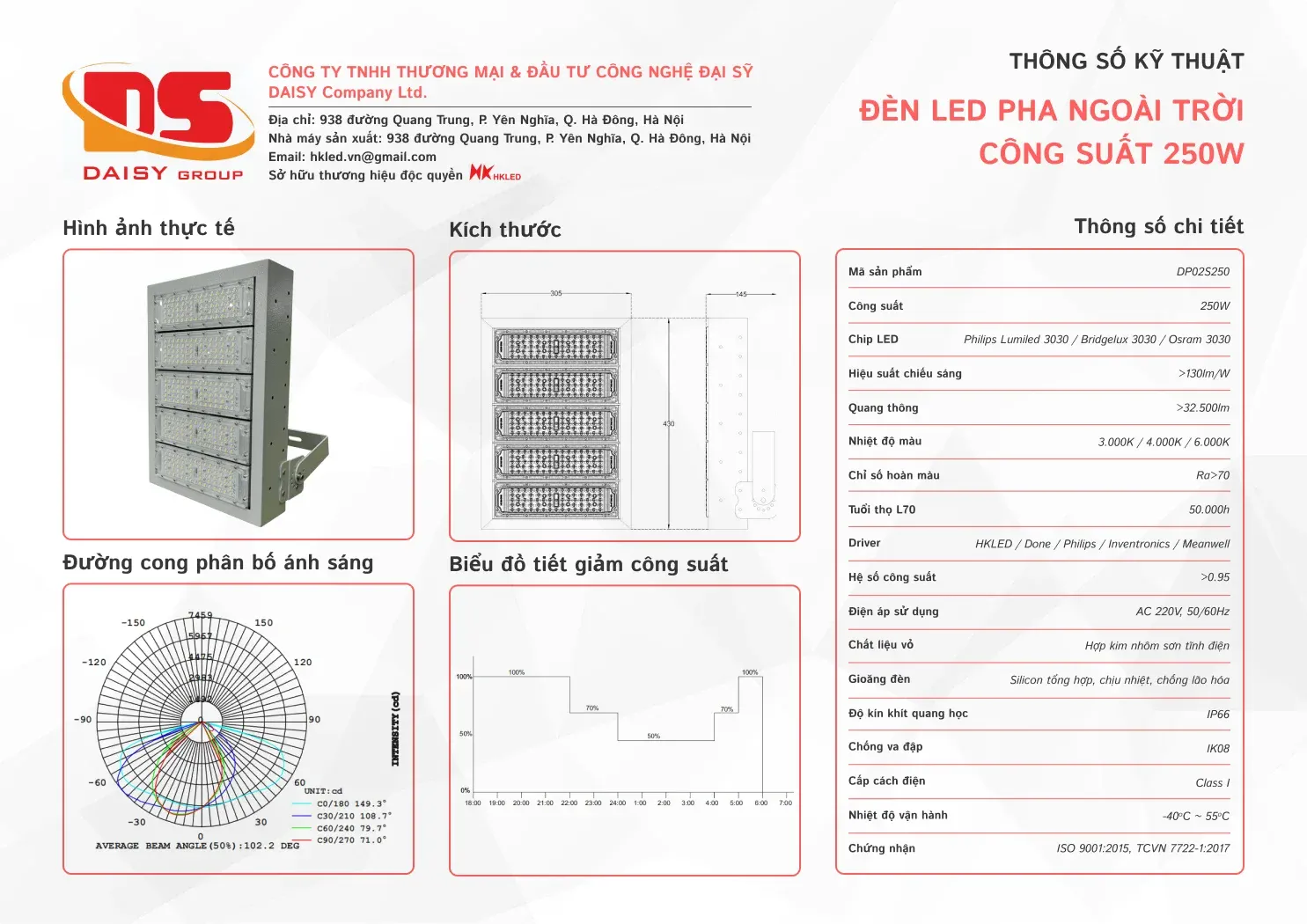 • Tuổi thọ L70: 50.000h