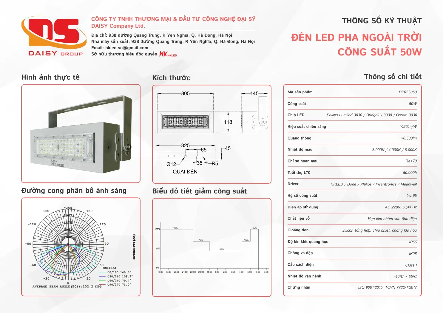 • Tuổi thọ L70: 50.000h